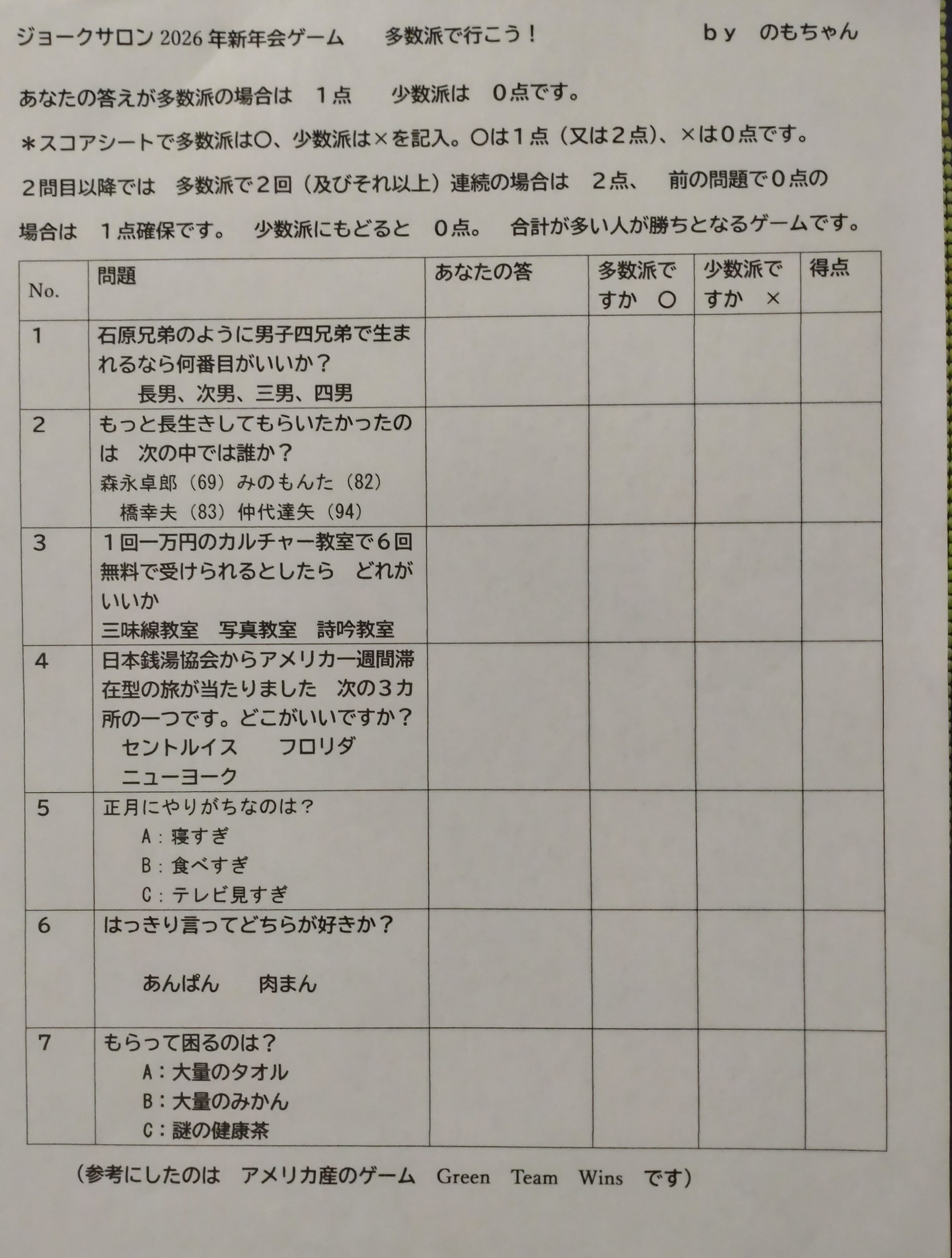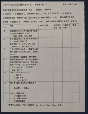 2025年の一笑開票の前に 変集鳥・野本と金鳥・柴本が担当しました ゲームを2つ実施しました